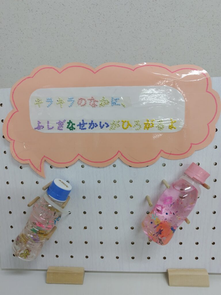 なかでも、空き容器に保冷剤やビーズなどを入れて作る「センサリーボトル」は大人気で、お昼前に