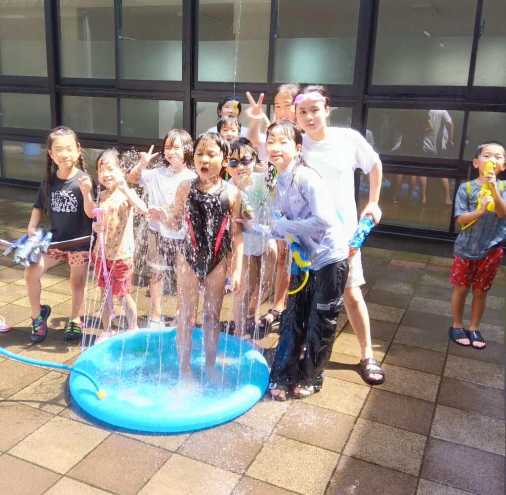 水鉄砲やバケツを使って水遊びをしながら笑いあう姿は、夏休みならではの光景です。